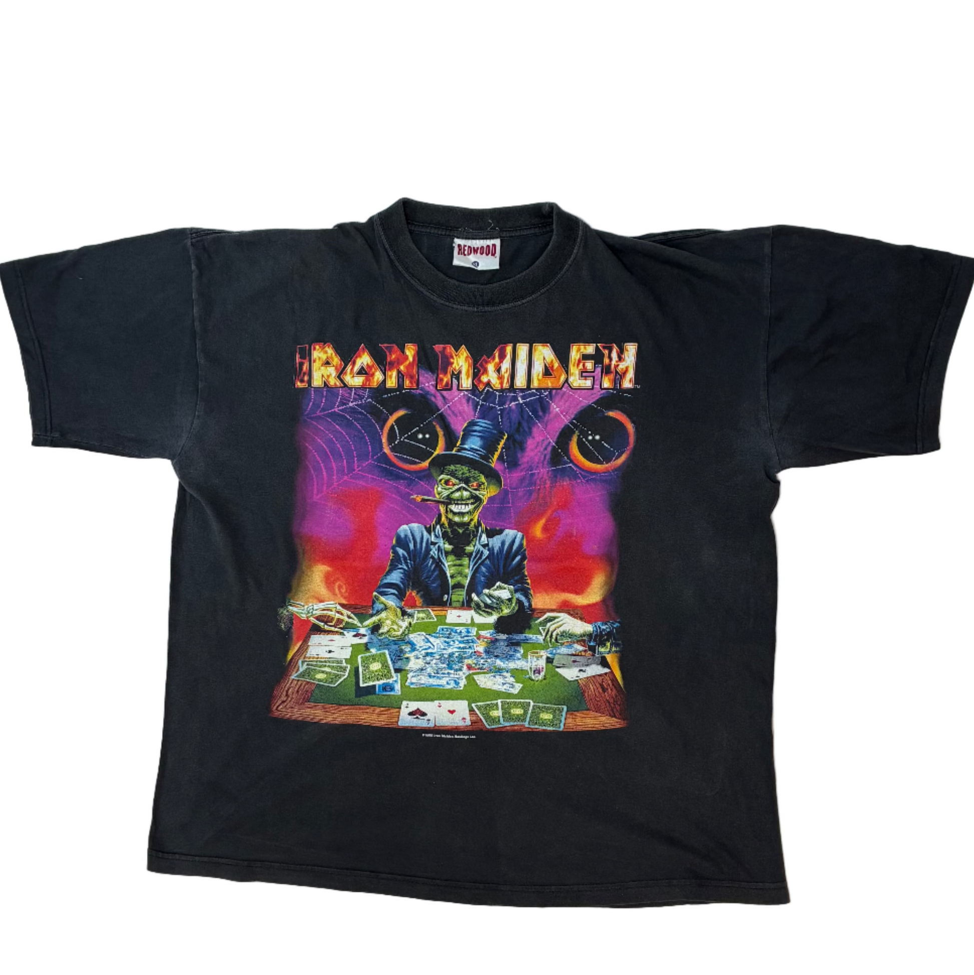 A standout piece from one of the most unique eras in the band’s history. Supporting their eleventh studio album Virtual XI. The album’s artwork and tour visuals drew heavily on futuristic and virtual reality themes. The “Poker” design references the album’s iconic cover, inspired by a virtual poker game motif that symbolised the merging of technology and heavy metal fantasy.